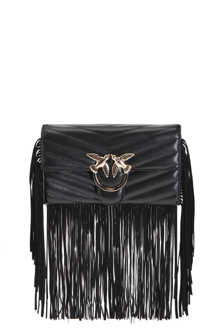 Fringes zijn nog steeds hot, ook buiten het festivalseizoen. En dan heb je aan de nieuwe Love Puff Fringes tas van de nieuwe Love Bag-collectie een goede. De tas is van mooi, zwart nappaleer en heeft de welbekende Love Birds-sluiting. Daarnaast heeft de tas een gouden chain van 110 cm, waardoor je de tas crossbody kunt dragen.