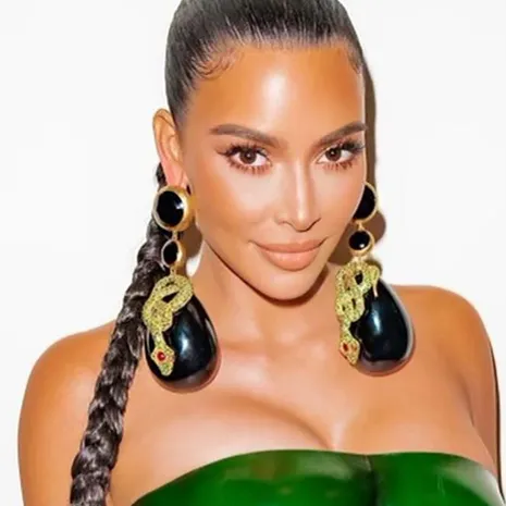 De jurk die Kim tijdens dit feestje droeg is een op maat gemaakte Schiaparelli-dress. De jurk is donkergroen, heeft een – ja echt – ingebouwde sixpack en een lange velvet rok. De oorbellen in de vorm van gigantische aubergines en lange vlecht maken de look af, maar zorgen er ook voor dat veel volgers zich afvragen wat de Kardashian met deze outfit wil uitstralen.