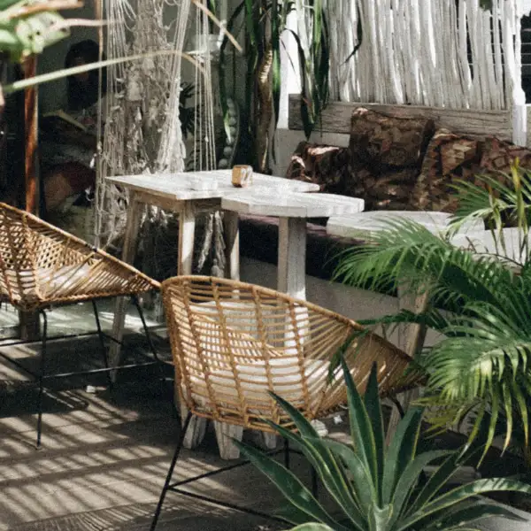 Wat betreft de meubels kun je gaan voor een ronde rotan tafel met een paar comfortabele rotan stoelen erbij. Dit heeft direct wat weg van een retro inrichting, een stijl die hand in hand gaat met de bohemian woonstijl. Let ook op de accessoires die je in de tuin plaatst: een grote kaarsenhouder of bamboe lamp is des te mooier in een ronde vorm. Om het geheel af te maken kies je nog voor een rond (buiten)kleed. Dit soort kleden zijn ook te verkrijgen in bamboe of riet, maar zijn ook juist aan te raden in een warme natuurlijke kleur.