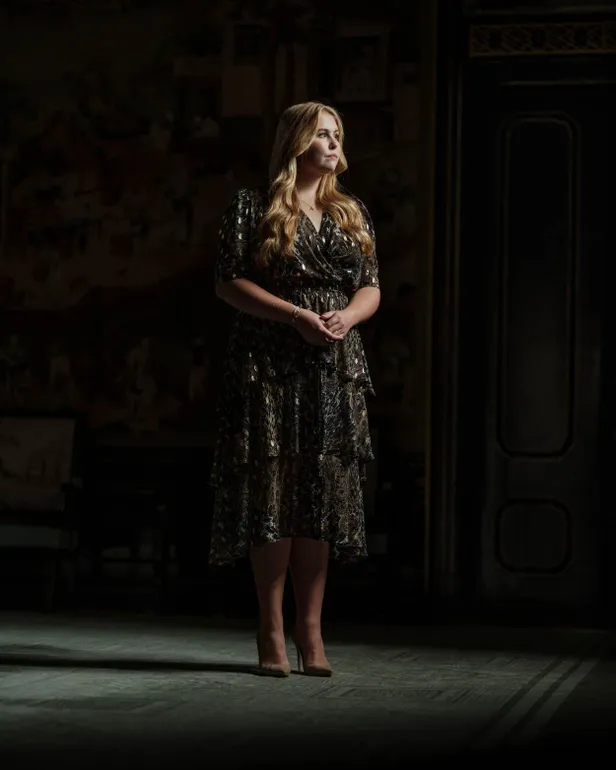 De tweede reeks foto's kan zó in een koninklijke portrettengalerij. Door de lichtinval komen niet alleen Amalia's mooie blonde lokken, maar ook de gouden accenten in haar jurk mooi naar voren.