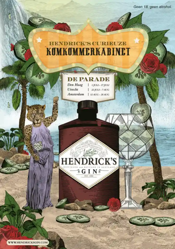 Van 1 juli t/m 28 augustus vertoont het reizend theaterfestival De Parade in samenwerking met Hendrick’s Gin een collectie van komkommercuriosa: Hendrick’s Curieuze Komkommerkabinet. De Parade en Hendrick’s Gin exposeren met het komkommermuseum in Den Haag, Utrecht en Amsterdam. Het komkommerkabinet vertoont een serie badderende, dansende, acrobatische en zingende komkommers als museumstukken. En gevulde glazen voor wie de juiste route bewandelt. Komt dat zien!