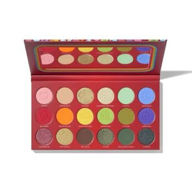 Blauw, groen, rood, geel: alle kleuren van de regenboog zitten verwerkt in het Artistry palette van Morphe x Lucky Charms. Dat wordt eindeloos mixen en matchen met glinsterende en matte tinten. Verkrijgbaar via eu.morphe.com