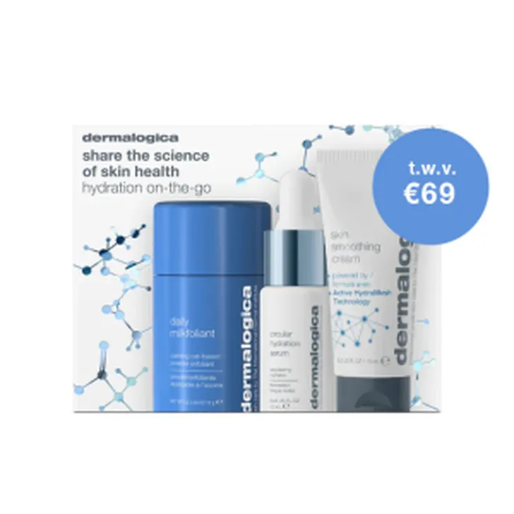 Goede hydratatie is helemaal in de winter geen overbodige luxe. Dit fijne hydration on the go-pakket van dermalogica bestaat uit de hydratatietoppers Daily Milkfoliant (13 g), Circular Hydration Serum (10 ml), Skin Smoothing Cream (15 ml). De totaalwaarde van het pakket is €59, maar speciaal voor de feestdagen kun je dit pakket nu voor €58 in de wacht slaan.