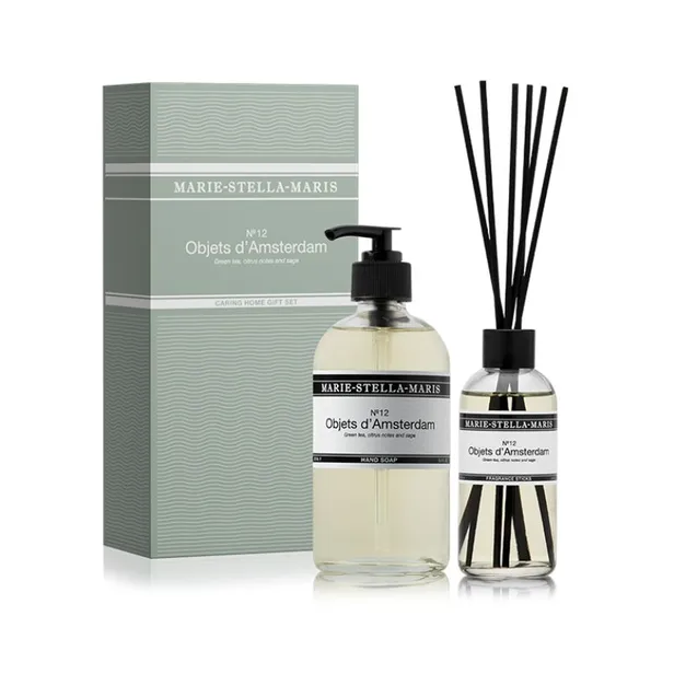 Een cadeaupakket weggeven is ook altijd een goed idee. De Caring Home giftset van Marie-Stella-Maris bestaat uit een milde handzeep (250 ml) en geurstokjes (100 ml) die beiden de iconische No. 12 Objets d'Amsterdam geur hebben. Heerlijk!
