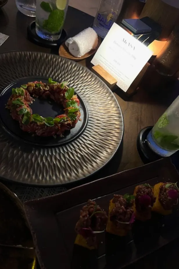 "In Bali besloten wij er direct op uit te gaan en zo vonden we een leuk restaurant aan de kust. Het voelde als een luxe om op een van onze eerste dagen al zo'n mooie sunset mee te kunnen pakken. Dit was het perfecte begin van een heerlijke vakantie. Daarna heb ik me fully op het heerlijke eten gericht en zijn we rollend naar het hotel gegaan."