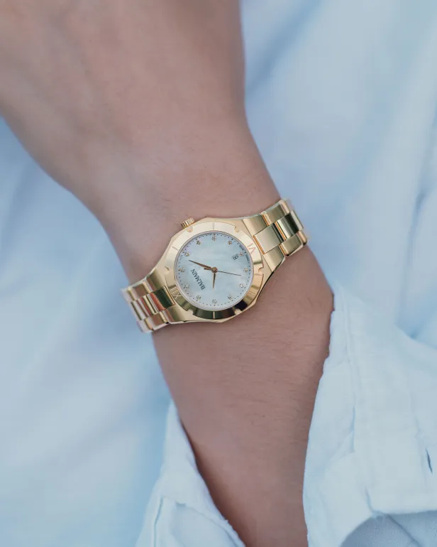 Bij Balmain watches is het love o'clock. Het merk heeft de mooiste horloges geselecteerd om cadeau te geven aan je geliefde. Dit tijden op de parelmoeren wijzerplaat zijn aangeduid met diamantjes om je look net dat beetje extra glamour en elegantie te geven.