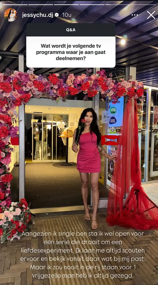 Jessica hoeft waarschijnlijk niet snel weer mee te doen aan een survivalprogramma. Wel lijkt ze ervoor open te staan om mee te doen aan De Bachelorette. Zo deelt ze een foto in haar stories waarop te zien is dat ze een roos vasthoudt, waarmee ze lijkt te verwijzen naar De Bachelorette. Ook schrijft ze dat ze wel mee zou willen doen aan een liefdesprogramma. "Aangezien ik single ben, sta ik wel open voor een serie die draait om een liefdesexperiment."