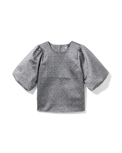 Zilveren top met pofmouwen