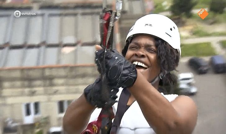 Datzelfde seizoen kwam NOS-nieuwslezeres Simone Weimans op grote hoogte in de problemen toen ze halverwege een zipline vast kwam te hangen tussen twee flatgebouwen, en zichzelf al bungelend naar de overkant moest hijsen. Eenmaal veilig op de grond bekende ze gortdroog: “Een lichte hartverzakking.” Wij voelden met haar mee, met het trauma van Janine’s val in ons achterhoofd. De socials hadden er dagenlang een trending topic bij.
