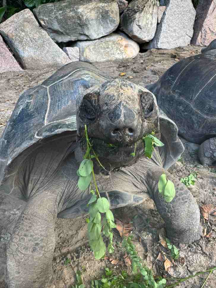 Freelancer Jill voerde de landschildpadden Donatello en Michelangela op de Seychellen. What a dream!