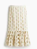 Zoals we eerder al zeiden is beweging een van de grootste trends dit voorjaar. Iets wat ook goed tot z'n recht kan komen in gehaakte items. Denk aan maxi-jurken met rough-cut franjes. Ook wordt er een 3D-effect gecreëerd in outfits met de 'popcorn-steek.' Hiermee wordt bijna een grove, koraalachtige textuur gecreëerd.